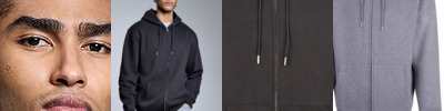 Oversized fit. Locker patch, for easy rebranding. Double-layer hood. Double-end silver zip. Kangaroo pouch pocket. No drawcords. Ribbed cuffs and hem. French terry inner. Size label only.