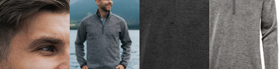Ultra-soft lightweight sweater knit fleece with brushed interior. Brushed tricot-lined collar. ½-zip front. Raglan sleeves with darted shoulders. Colour-matched trim. Contrast coverstitching. Low-profile chin saver. Elastic hem and cuff trim. Contains recycled polyester.
