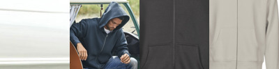 Three-thread fabric. Brushed inside. Ribs with elastane. Double dyed. Double stitched. Double pre-shrunk. SBS zip.