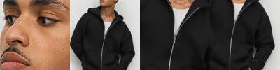 Brushed back fleece.Drop shoulder style.Lined hood with self colour drawcord.Full length silver metal YKK zip.Taped neck.Front pouch pockets.Ribbed side inserts, cuffs and hem.Tear out label.