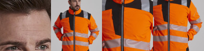 Certified EN ISO 20471:2013+A1:2016. RIS-3279-TOM ISSUE 1:2016 (Orange only). HV Orange/Navy & HV Yellow/Navy - Class 3. Double fabric hood with adjustable drawcords. Ribbed contrast colour cuff and hem. Inner fabric brushed fleece. Over shoulder, around arm and body reflective tape.